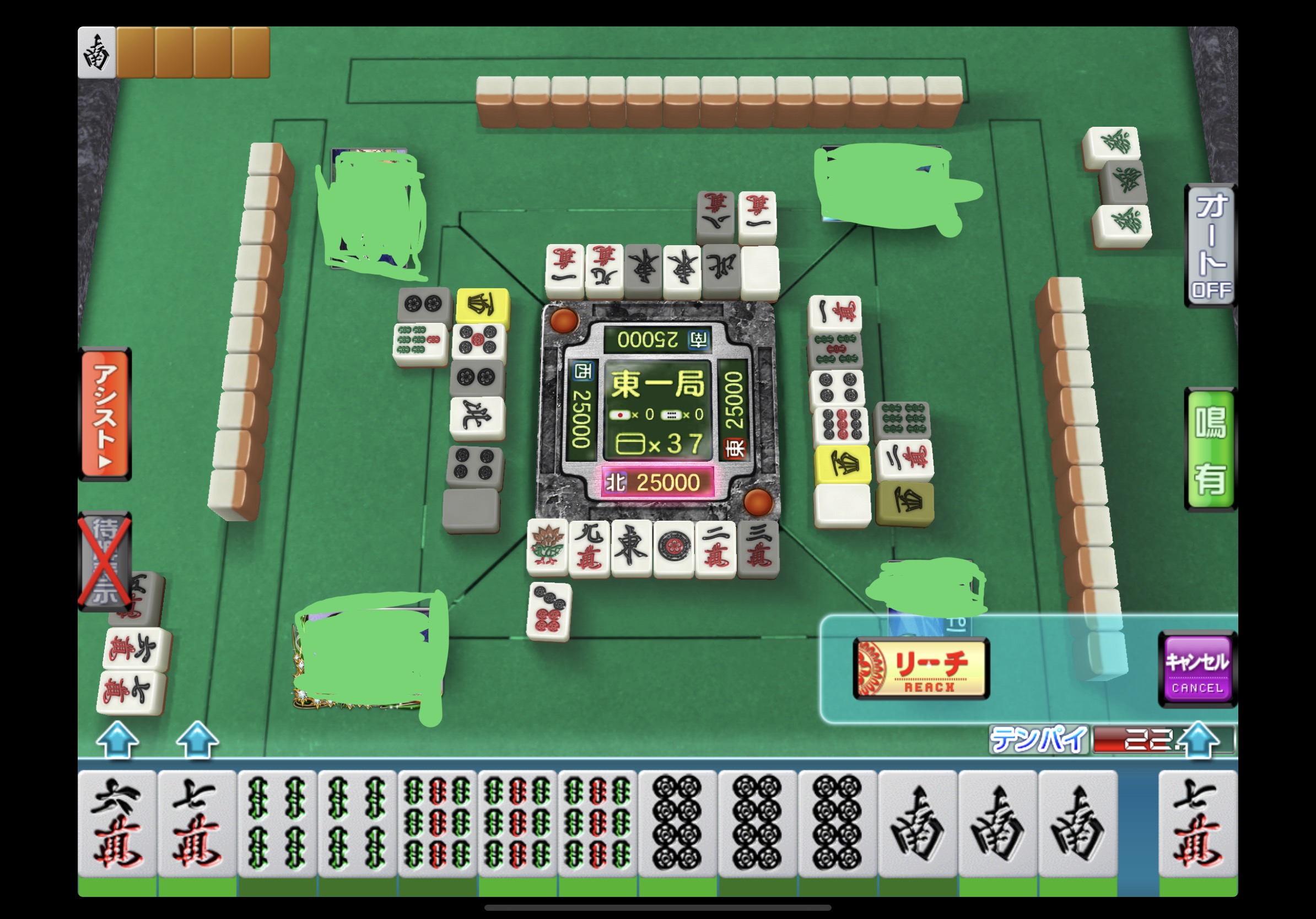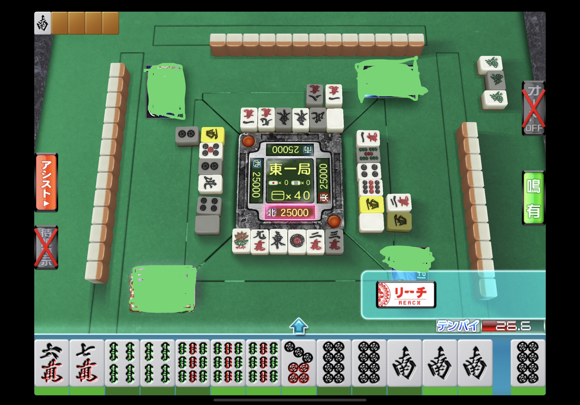 We have a new post from Japan! Although it may not be a WWYD, it is more like a WYR (Would You Riichi?) question. We deleted the names of the players, but we can see the situation at least!